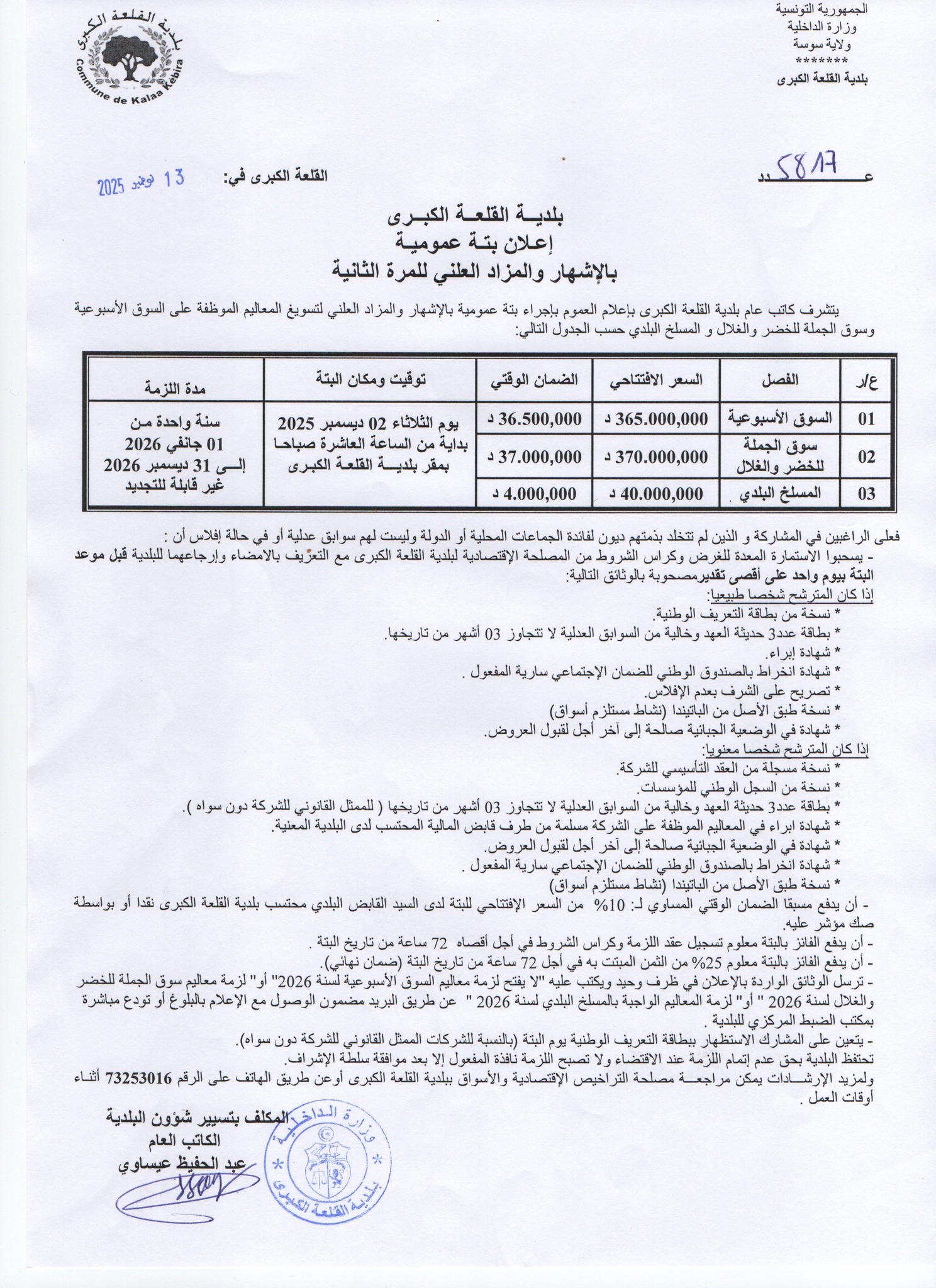 للاطلاع على جميع أخبار بلدية القلعة الكبرى يمكنكم الاشتراك في هذه الخدمة عن طريق تسجل بريدكم الالكترواني