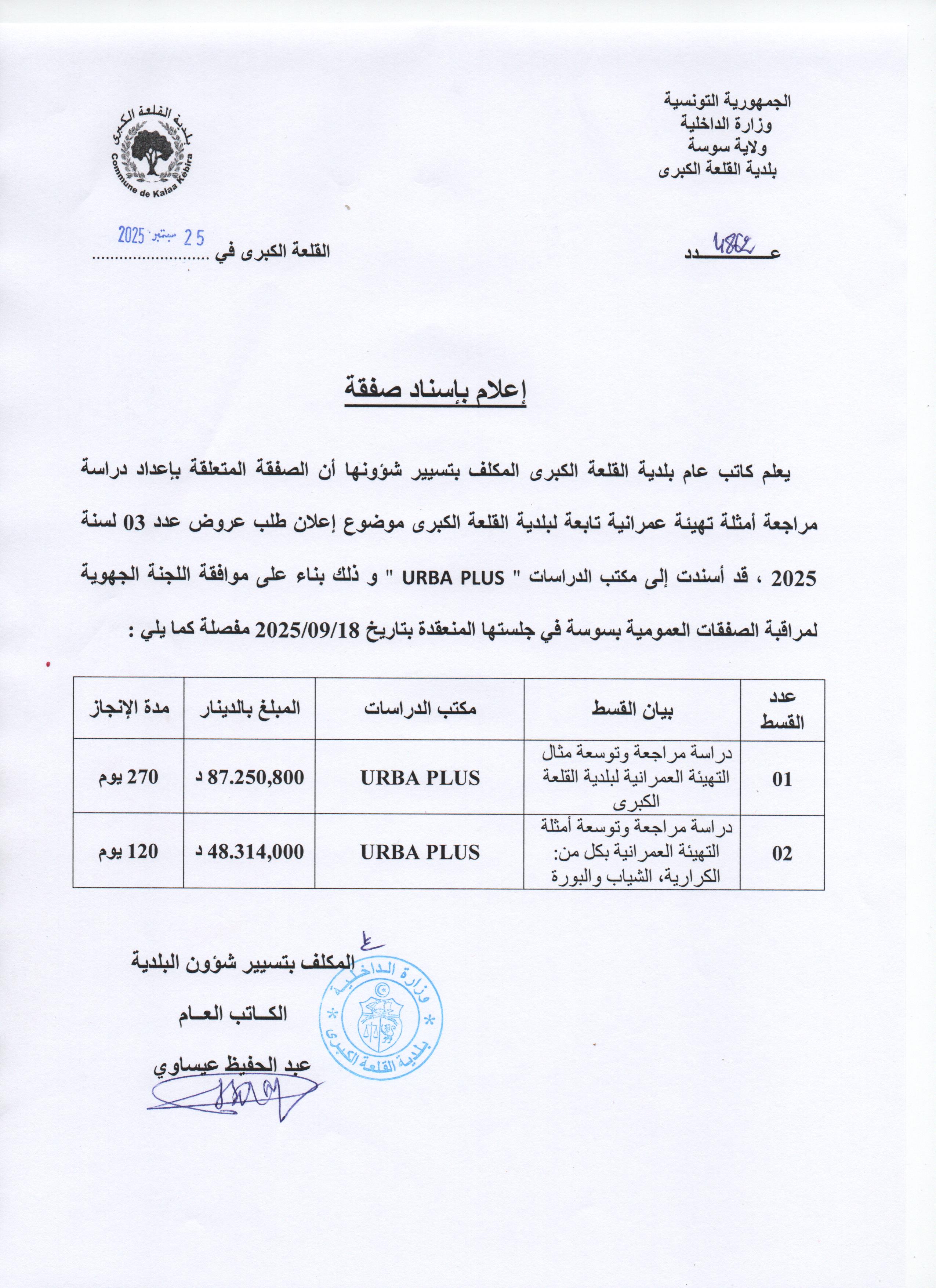 بلدية القلعة الكبرى تهنئ المواطنين بحلول شهر رمضان المعظم